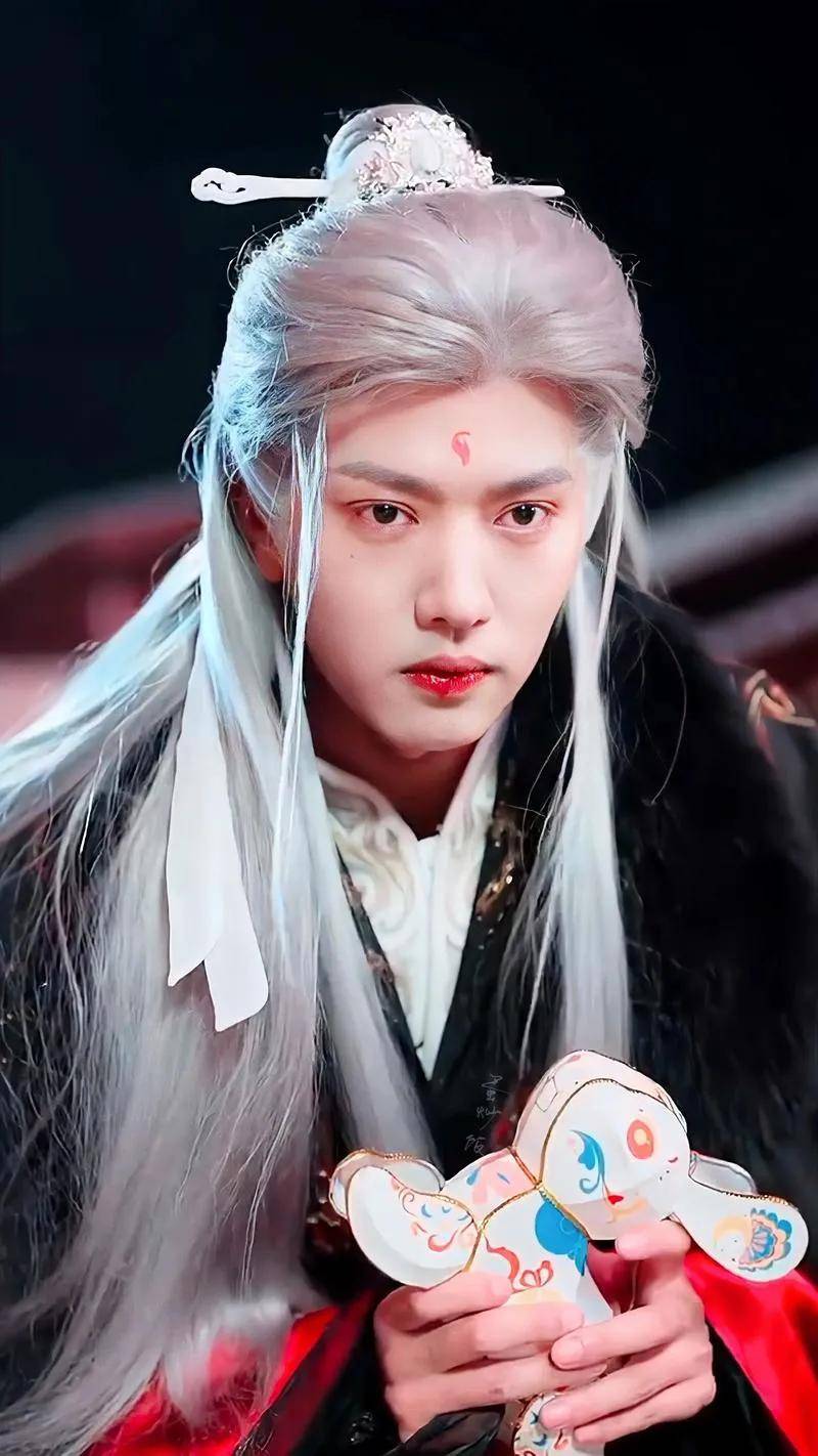 陈添祥在双面权臣暗恋我中的造型可谓别具一格。白发蓝瞳搭配神秘面具,既有破碎美感又不失仙风道骨。这种突破传统的古装扮相,让他在众多演员中脱颖而出,给观众留下深刻印象。